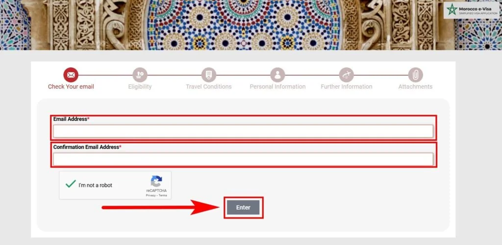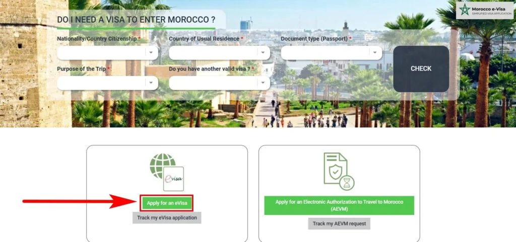 1. Visit Morocco’s official portal at https://www.acces-maroc.ma/ and select “Apply for an eVisa”.