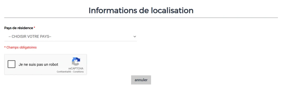 - Select the information about localization and tick the box proving that you are not a robot.